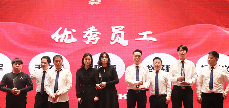 各部門主管給各優(yōu)秀員工頒發(fā)獎(jiǎng)項(xiàng),他們是一年出差在外300天的售后工程人員,是在車間里組裝一臺(tái)臺(tái)新設(shè)備的組裝人員,是在辦公室默默耕耘的行政人員……他們是每個(gè)平凡崗位上的不平凡的人。