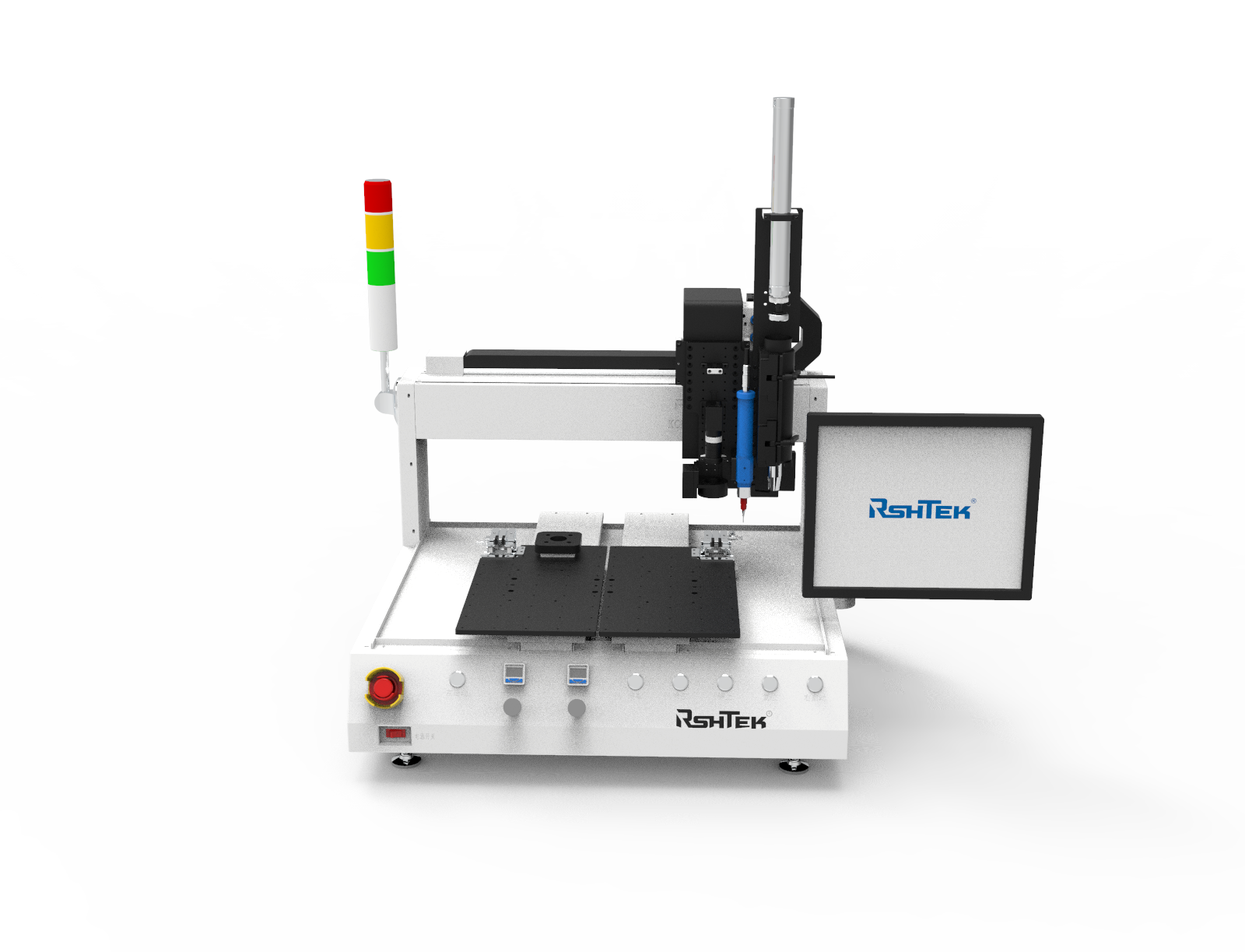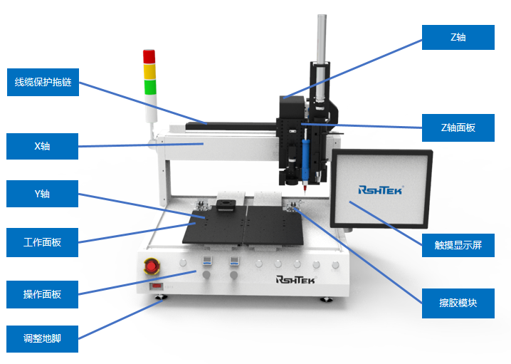 睿斯合三軸桌面點膠機DR系列雙工位桌面點膠機,提高生產(chǎn)效率,雙Y軸同時工作,嚴選伺服電機、絲桿品質(zhì),保證了產(chǎn)品的精度和耐用性。控制系統(tǒng)全內(nèi)置設(shè)計+懸臂式顯示器,使得整機緊湊,更方便收納。可搭配多款點膠閥,滿足不同工藝生產(chǎn)的需求。適用于熱熔膠粘接、底部填充膠、表面貼裝等。