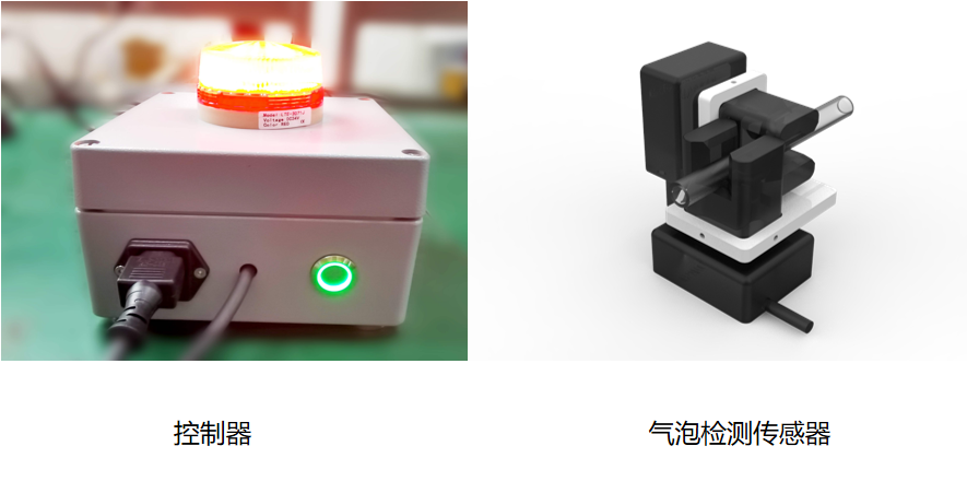 原理:氣泡檢測傳感器是根據(jù)超聲波在不同介質(zhì)中的不同傳播特性,通過特殊的電路分析處理,以智能辨別出被監(jiān)測流動管道中的介質(zhì)狀況。