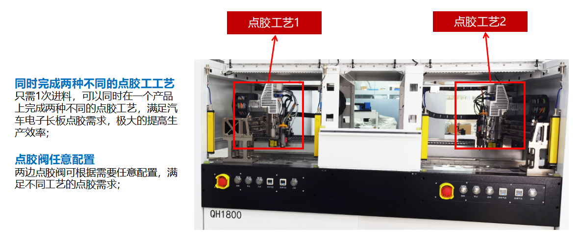 睿斯合QH1800全自動(dòng)點(diǎn)膠機(jī)針對(duì)汽車(chē)電子行業(yè),設(shè)計(jì)研發(fā)出的新款全自動(dòng)視覺(jué)點(diǎn)膠機(jī),可在同一產(chǎn)品上,一次進(jìn)料,同時(shí)完成兩種不同的點(diǎn)膠工藝,極大的提高工作效率,雙X,雙Y,雙Z軸,有效行程X軸1200mm,Y軸520mm,Z軸50mm,可根據(jù)需求搭載不同的功能模塊。