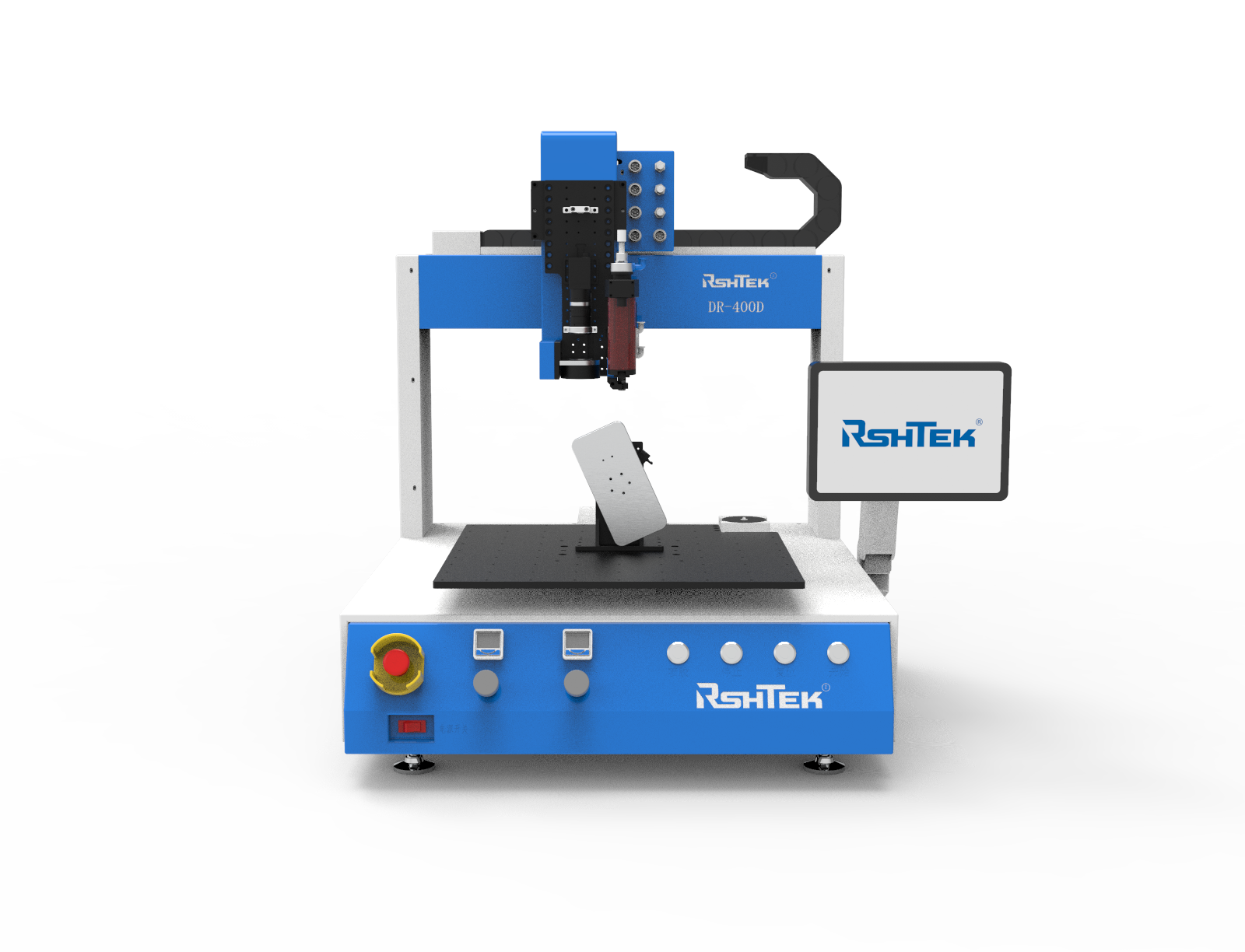 DR-400D是睿斯合桌面機(jī)DR系列的升級版,旋轉(zhuǎn)機(jī)構(gòu)帶動(dòng)產(chǎn)品旋轉(zhuǎn),可實(shí)現(xiàn)對產(chǎn)品四邊依次點(diǎn)膠。 睿斯合三軸桌面點(diǎn)膠機(jī)DR系列,嚴(yán)選伺服電機(jī)、絲桿品質(zhì),保證了產(chǎn)品的精度和耐用性??刂葡到y(tǒng)全內(nèi)置設(shè)計(jì)+懸臂式顯示器,使得整機(jī)緊湊,更方便收納??纱钆涠嗫铧c(diǎn)膠閥,滿足不同工藝生產(chǎn)的需求。適用于熱熔膠粘接、底部填充膠、表面貼裝等。