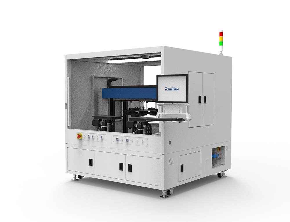 雙工位旋轉+膠路固化點膠系統(tǒng)GJ11121Y,產品旋轉平臺可以實現(xiàn)產品四邊側面點膠,可自由搭載機械手實現(xiàn)全線自動化生產,雙工位運作和UV-LED膠路固化一體化的設計,較大的提高生產效率。