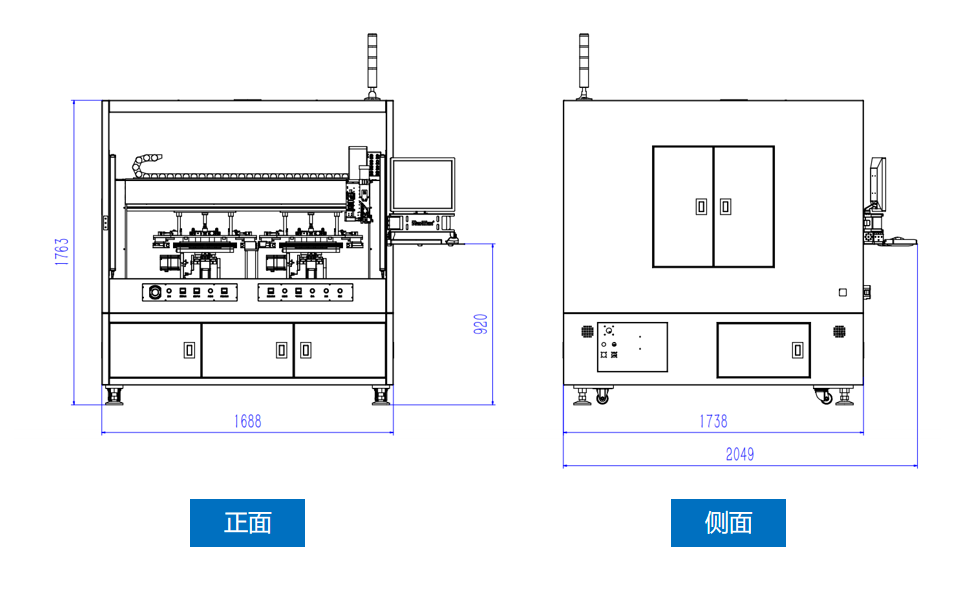 產品定位、點膠作業(yè)、膠路固化分開至兩工位,并行作業(yè),實現(xiàn)效率提升。設備前后可自由搭載機械手,實現(xiàn)全線自動化生產。